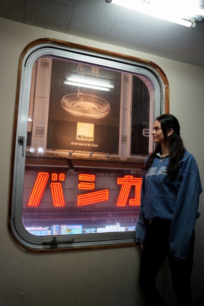 This is one of the most creative portrait spots in Kabukicho if you want a strong red neon look. The sign outside Ganso Abura-do gives off a very intense red light that immediately changes the mood of the image. It feels bold, urban, and a little cinematic, which makes it a great choice if you want something that looks more stylized than the usual wide Shinjuku street shot.