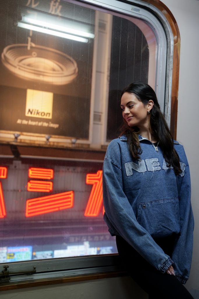 What makes this spot especially good is the lighting. The wall lights are not just decorative. They can become your main light source and cast beautiful shadows and highlights across your face and outfit. If you place yourself close to the wall, the light shapes your face in a very flattering way while the neon sign in the background adds color and depth. It is a very effective location if you want something that feels polished without needing a complicated setup.