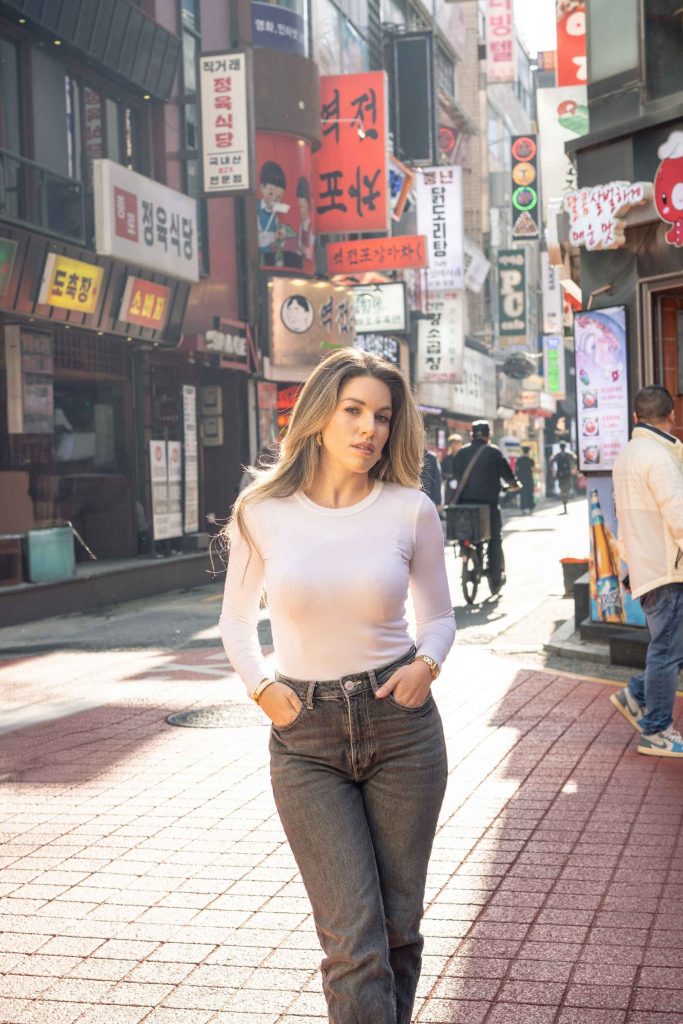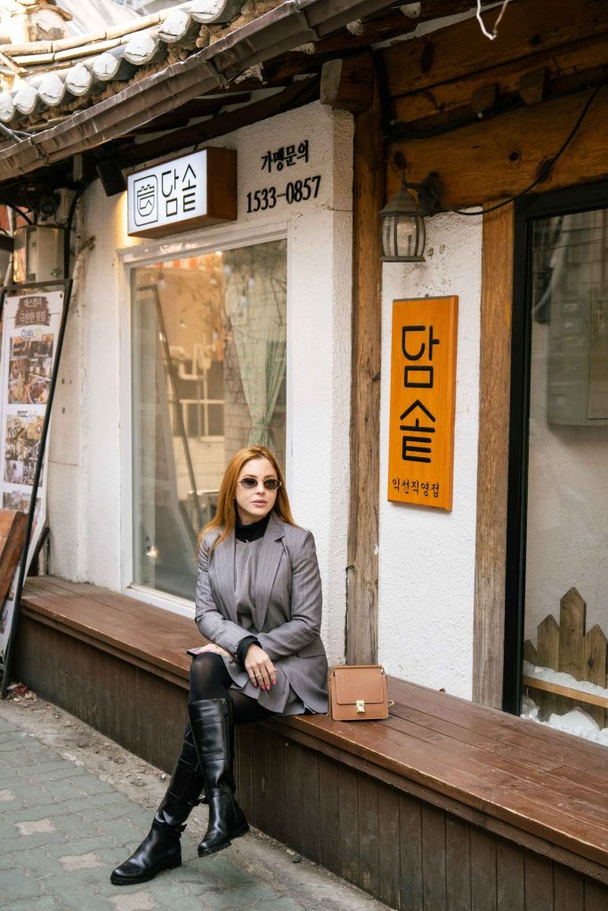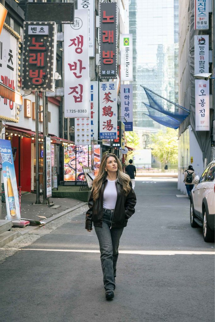 This pose works especially well in crosswalks, side streets, or any setting that gives off a local, lived-in vibe—just like the streets of Tokyo, Seoul, or Paris.