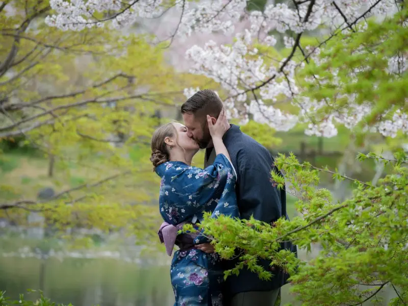 Attire suggestions? Opt for the timeless elegance of white attire as it’s the most neutral color. But you can also embrace your personal style with any color palette. If you want to wear a kimono, I can arrange it for you. Once you book, just tell me how many kimonos you need and I will take care of it. You just show up at the kimono shop and you will pay the rental shop directly..